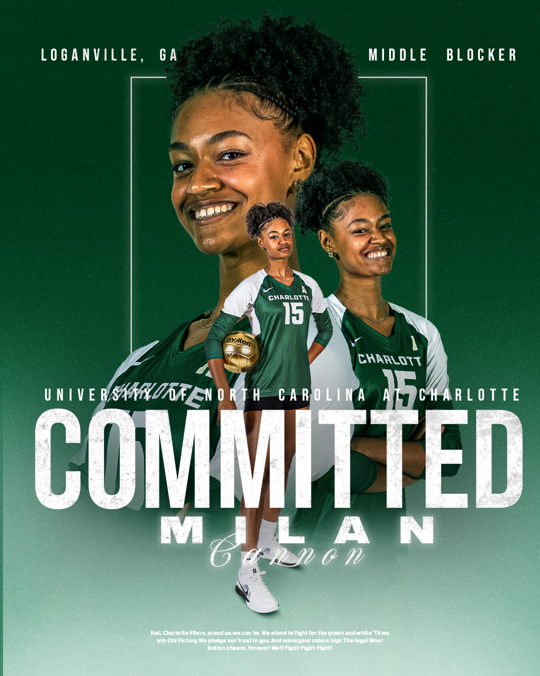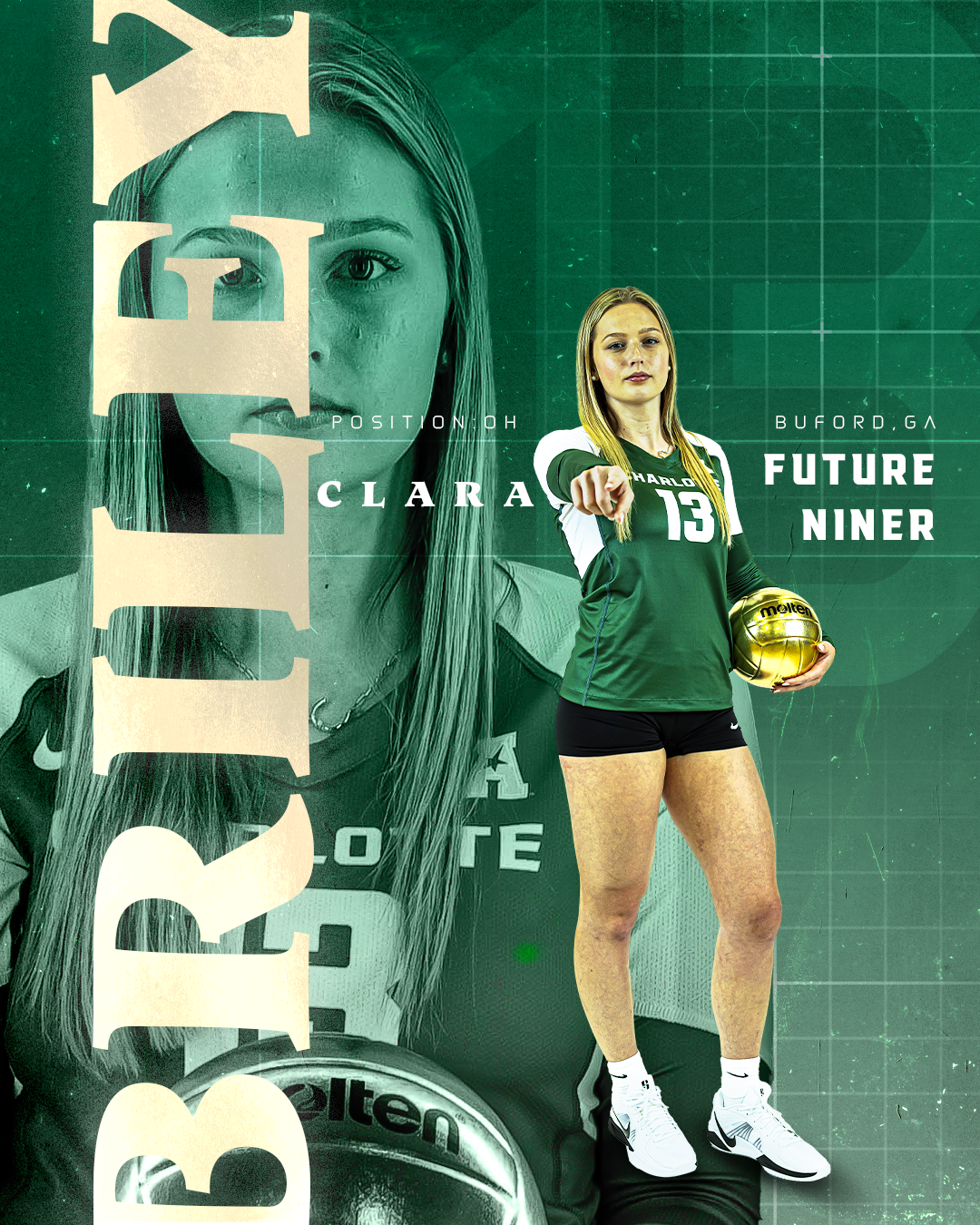 During the summer, I had the opportunity to work with the women’s volleyball team, creating graphics for staff introductions, events, and new player commitments—each crafted to reflect Charlotte’s volleyball identity. I designed several customizable templates to make updating graphics for different players fast and consistent. In addition, I helped plan upcoming season content and created designs for future campaigns, including “Pick Up Future Niners.” Commitment graphics were also sent directly to players so they could share them on their personal social media platforms.